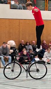 wahrer Balance-Akt um den Körper und das Rad über diesem